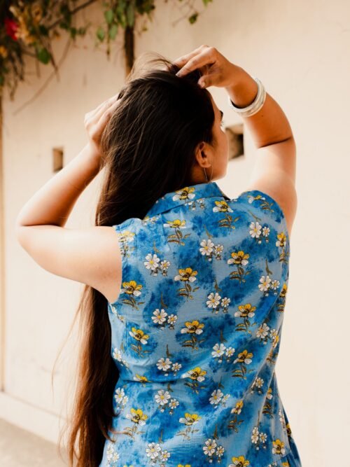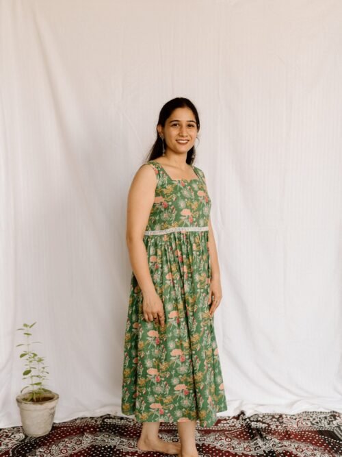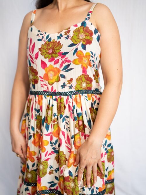 Cream Multi-Color Floral Printed Cotton Midi Dress