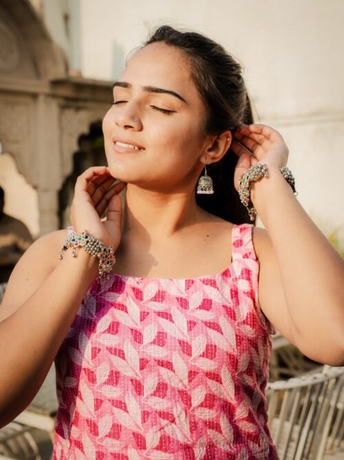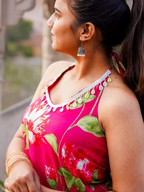 Hot Pink Floral Printed Anarkali Set plazo + gown